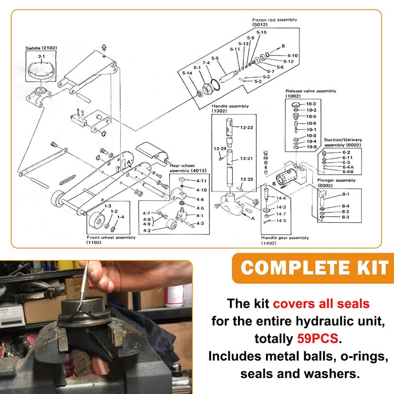 - 【Complete Kit】This seal kit comes with complete hydraulic unit, totally 59pcs. Includes different metal balls, o-rings, seals and washers. Easy and quick installation.