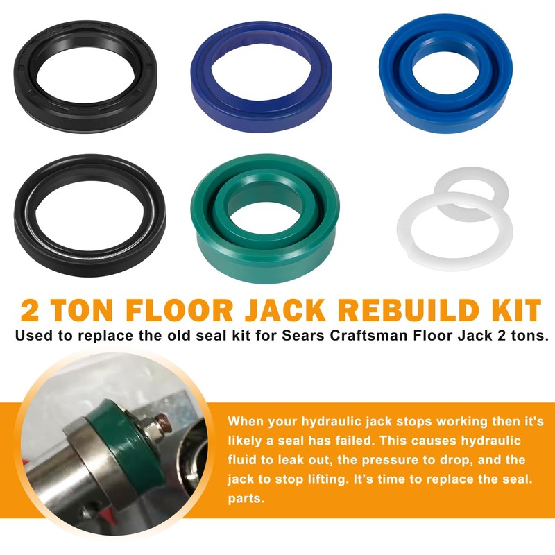 - 【Function】Used to replace the old seal kit for Sears Craftsman Floor Jack 2 tons. When your hydraulic jack stops working then it's likely a seal has failed. This causes hydraulic fluid to leak out, the pressure to drop, and the jack to stop lifting. Replacing new jack seals can effectively block external air from entering the equipment, maintaining a good sealing environment and improving the lifting efficiency of the jack.