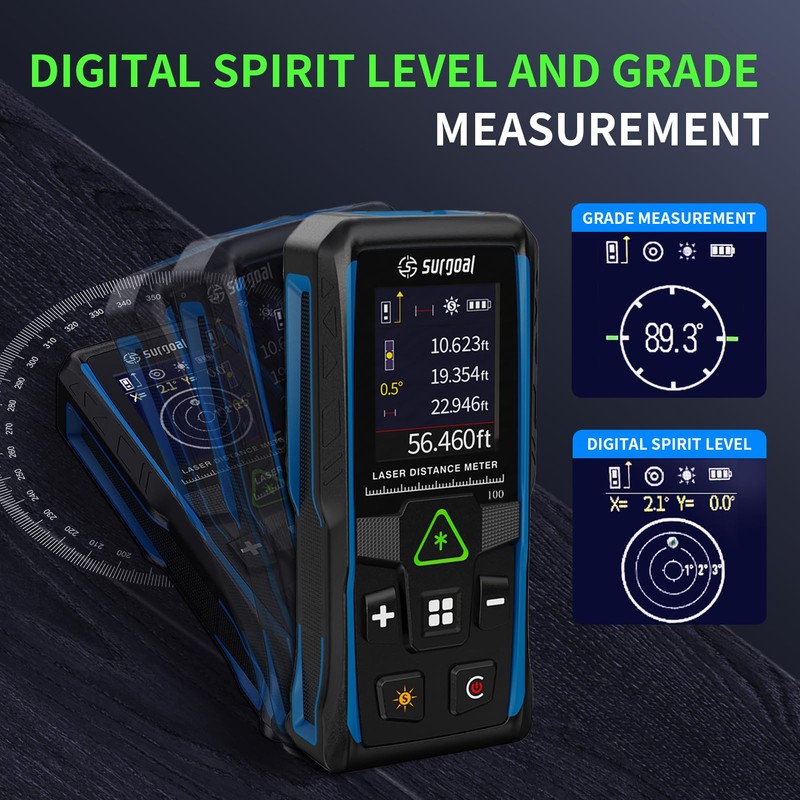 • 【Real-Time Angle Sensor & ±3mm Accuracy】This digital laser measure features an integrated angle sensor that displays real-time tilt. With ±3mm accuracy and 0.5s response time, it delivers fast, reliable measurements every time.