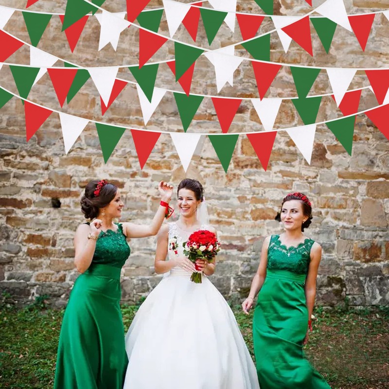- ESSENTIAL PARTY SUPPLIES: These green red white Christmas bunting triangle flags are good ideal for any kind of celebration,party,festival,events or other occasion.Like christmas day party,Xmas eve,carnivals,birthday party,baby shower,graduation,retirement,family gatherings,outdoor activities,picnics,BBQs,dance,tea party,hen party,bridal shower,bachelorette,engagement,wedding shower,christenings,anniversary,holiday party,valentine's day,mother's day,new year's eve,nursery,home decor etc.