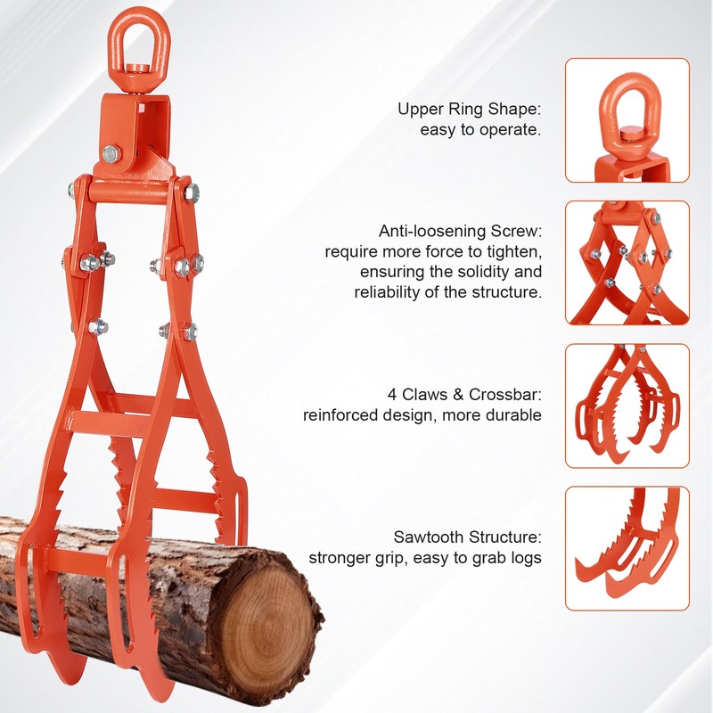 - 【Powerful Grip】Our wood grab hooks are designed with strong eagle claws, with sturdy steel jaws and unique serrations, when lifting heavy logs in the closed state, the heavier the weight, the tighter the pliers pull, which can firmly grasp the logs without slipping, ensuring your log handling tasks are perfectly executed.