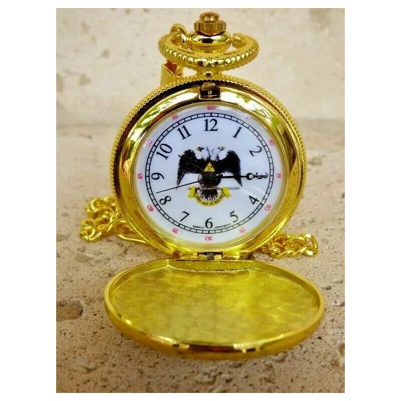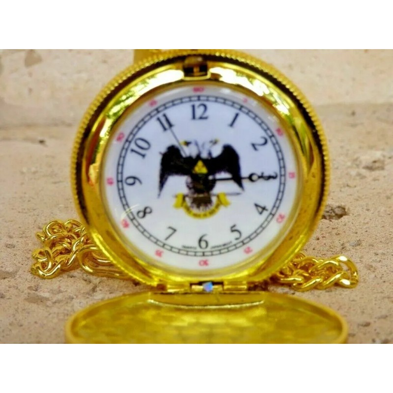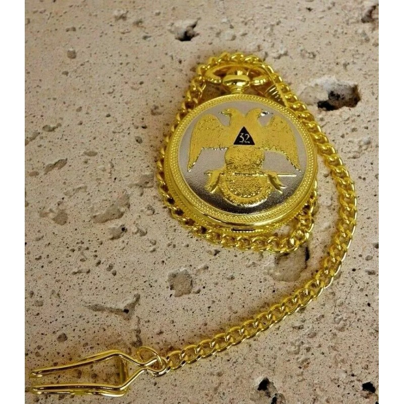 Beautiful High Polish Chrome and Gold 32nd Degree Masonic Pocket Watch