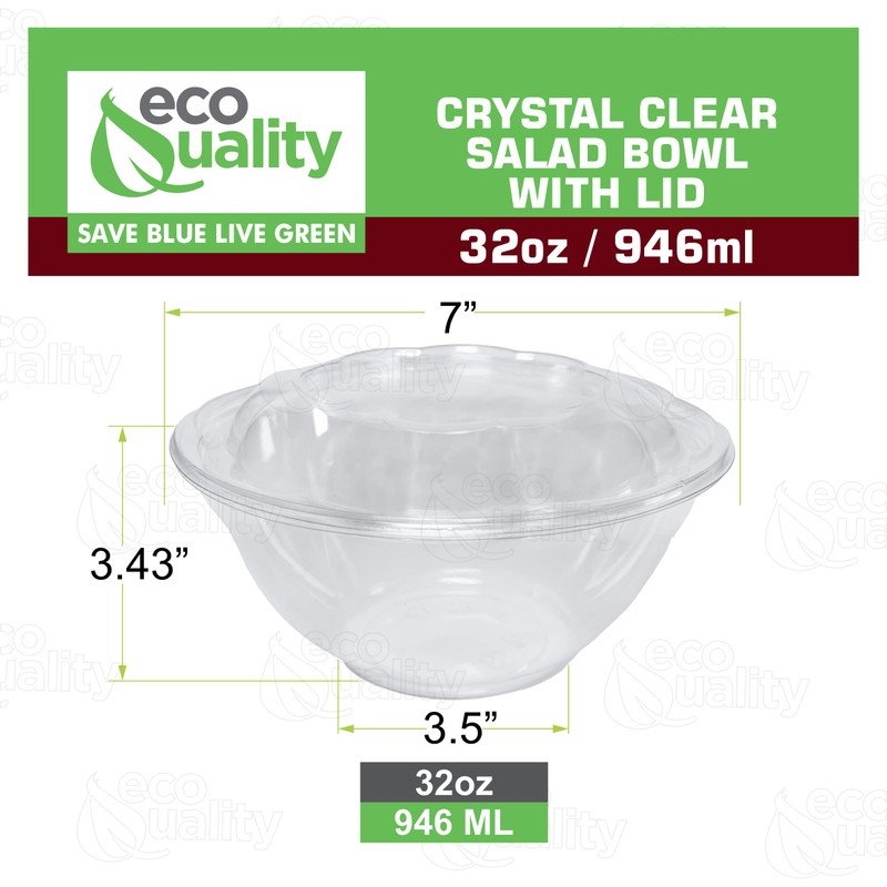 - Amazing Presentation: 32 oz (ounce) Crystal Clear container with matching lids. Top of the line presentation for prepared and on the go products. Eco Friendly!