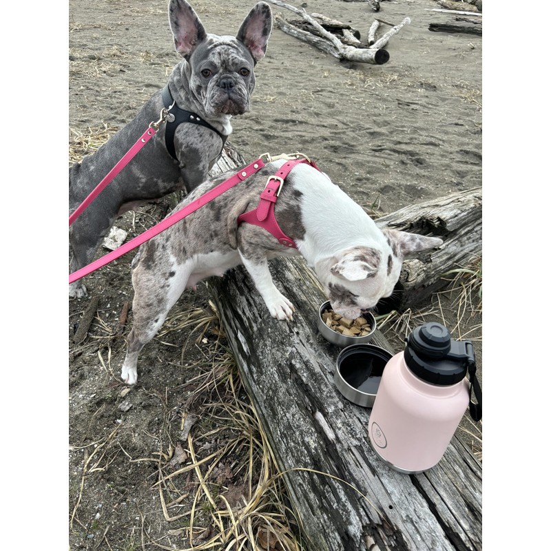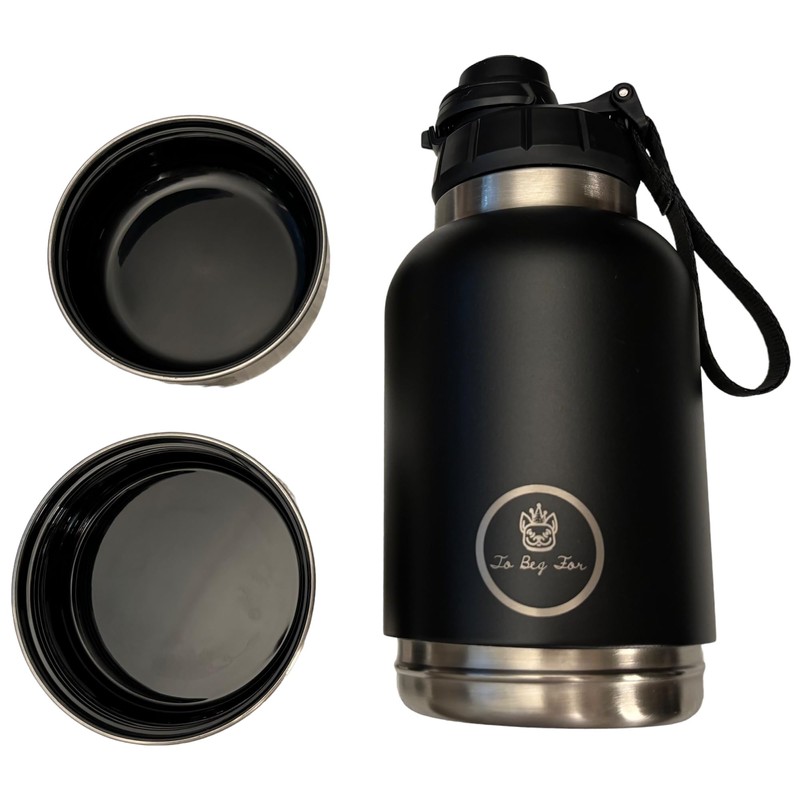 - 3 in 1 stainless steel, 32ox vacuum insulated, locking pop up lid,leakproof, 2 detachable bowls, loop handle, adjustable carrying sleeve with zippered waste bag dispenser pocket.