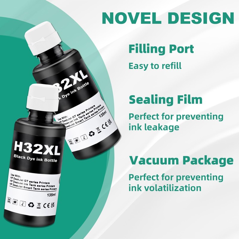 - Package Contents: Total compatible 32 black ink bottle 3 pack: 3 x compatible hp 32xl black ink bottle (135ML)