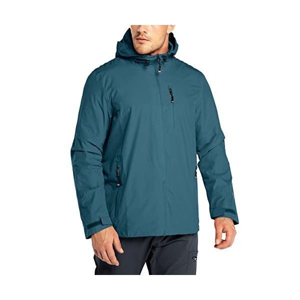 - 【Windproof and waterproof】Waterproof rain jacket features windbreaker breathable full heat seam-sealed construction, with 8000mm H2O in waterproof level. All zippers outside are 100% water resistant, keep your storage items dry. This shell allows water to run off its surface without seeping in, and allows you to dry completely even during downpour rain. It can keep dry in rainy days and windy days and keep heat from losing.