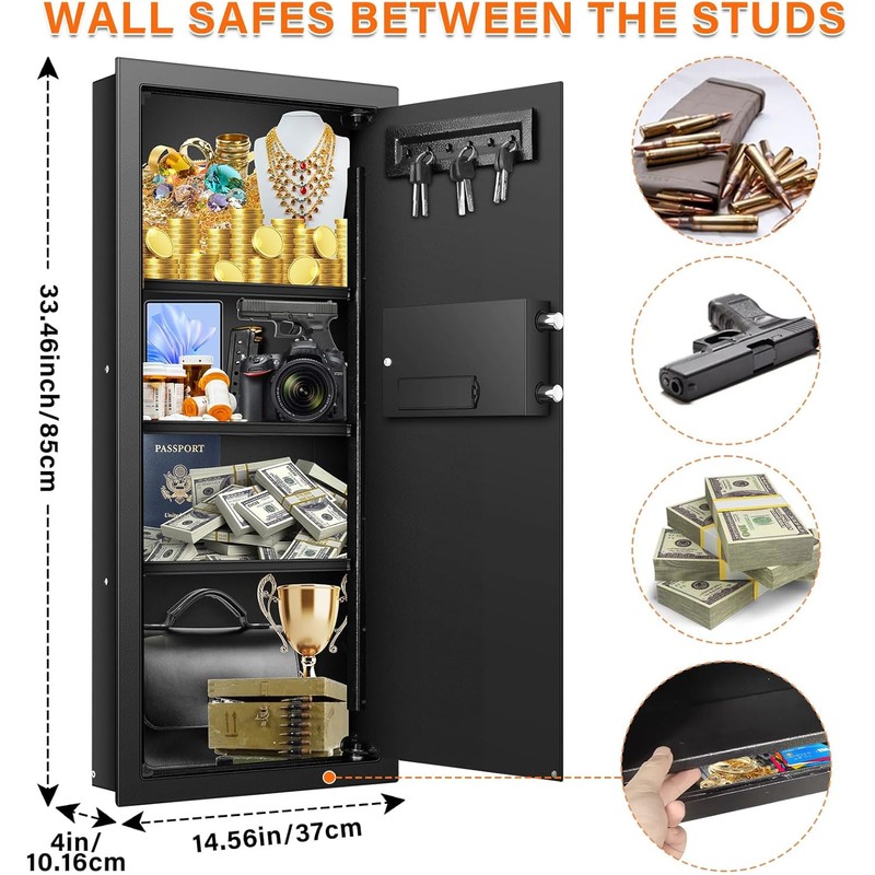 33.46" Tall Fireproof Wall Safes Between the Studs 16" Centers, Heavy Duty Combination Lock in Wall Safe with 3 Removable Shelf, Hidden Safe for Money, Jewelry, Document, Passport