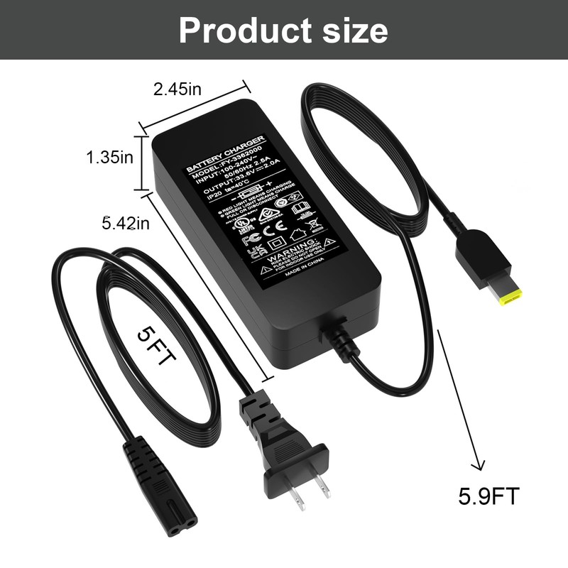 - 【Product Information】Input Voltage AC100-240V; Output voltage: DC33.6V ; Fireproof PC Shell (more secure)+ Pure Copper Core (Longer Service Life)