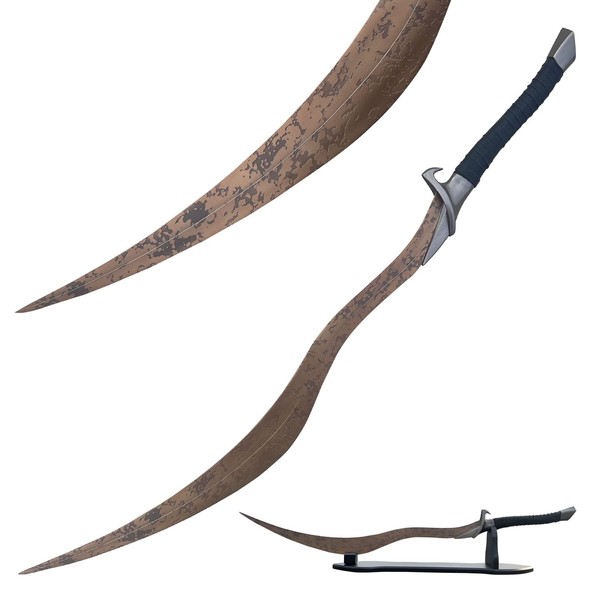 33" Fang Sword Curved Greatsword Knight Sword Metal with Display Stand,for Cosplay,Display,Collection