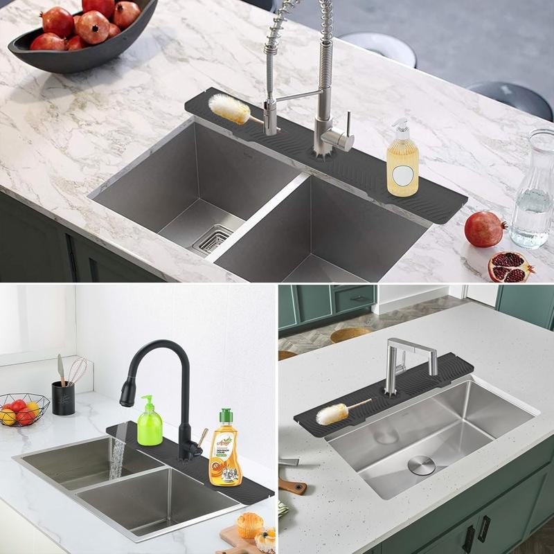 【Multifunctional and Versatile】:Faucet Water Catcher Pads are not just for home bathroom and kitchen sink countertop but also serves as a organizing sponge holder pad for brushes, soaps, hand sanitizers, and detergents. It's also a great housewarming gift for friends or family.