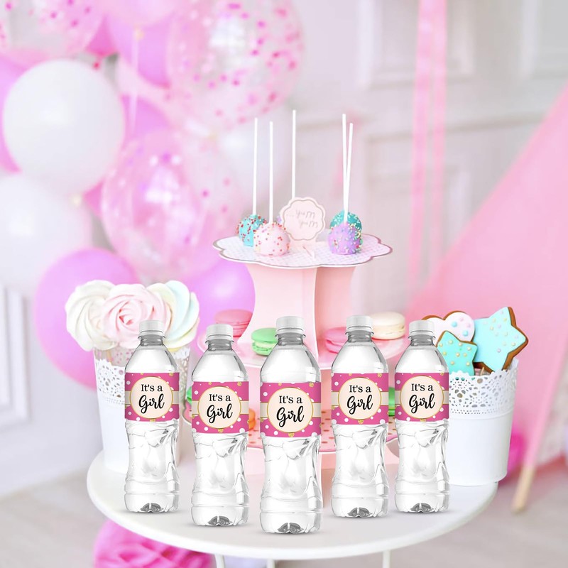33 Pcs It's a Girl Water Bottle Labels, Baby Shower Gender Reveal Water Bottle Wrappers Stickers Baby Girl Gift Party Decorations - Pink