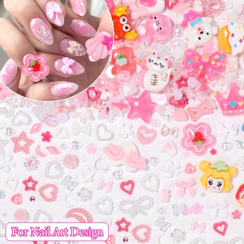 - Assorted Nail Charms: Pink color 3d nail charms adds a personal touch to your DIY, making it glow with bright colors and unique designs. These cute resin nail charms are light in weight, rich in color, not easy to damage, and can be used for a long time