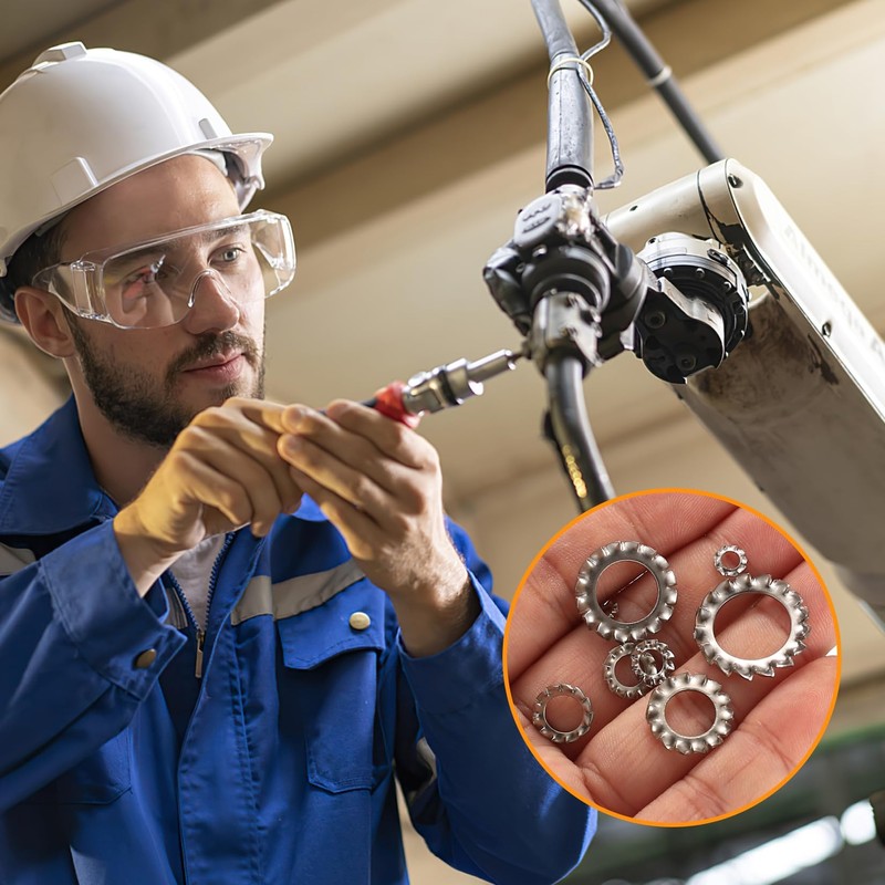 2. Serrated tooth washers apply spring force between the fastener head and the substrate to generate greater friction and anti-rotation