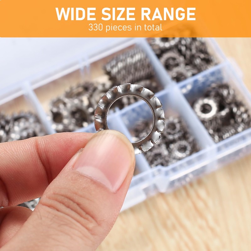 330pcs Starlock Washers Assorted, Stainless Steel Internal Star Tooth Lock Wa...