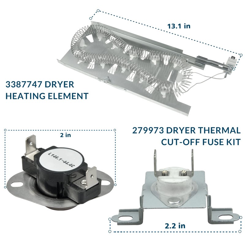 3387747 Wp3387747 Dryer Heating Element Compatible Whirlpool Kenmore, 279816 Thermostat Kit 279973 3392519 Dryer Thermal Fuse Kit Cut-off Replace Part Replacement