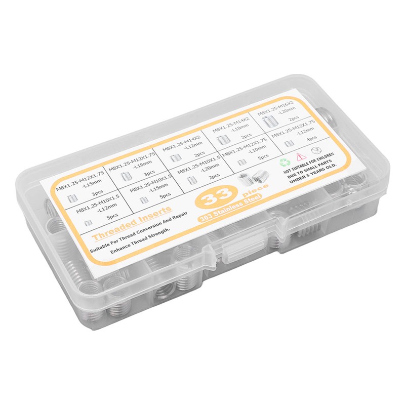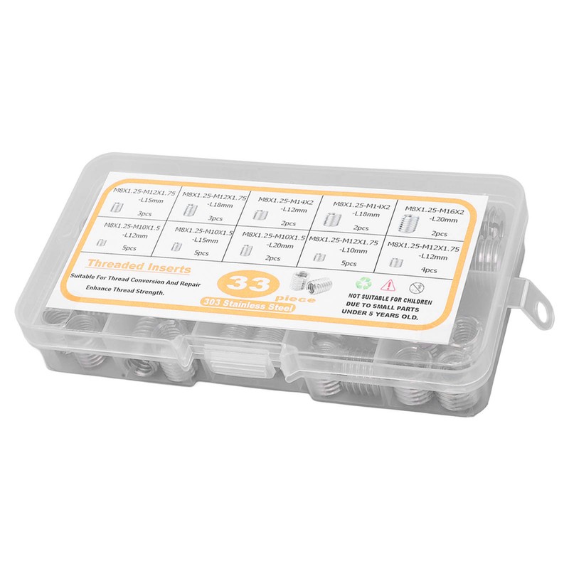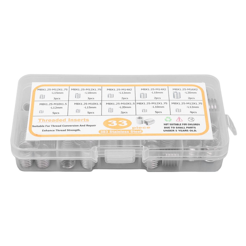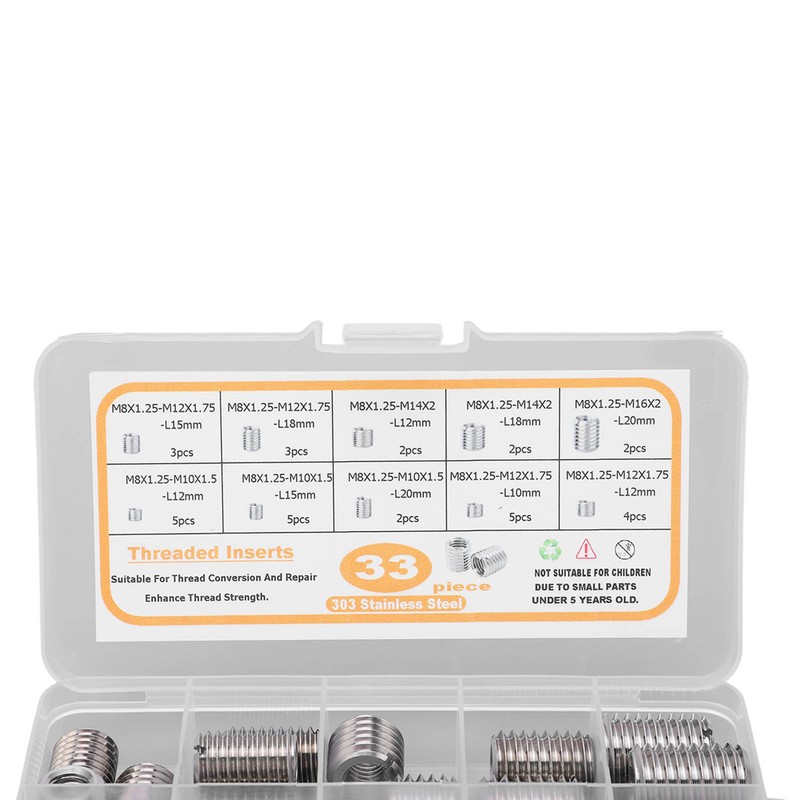 33PCS M8x1.25 Threaded Insert Assortment Kit Stainless Steel Thread Reducer Nut Repair Sleeves