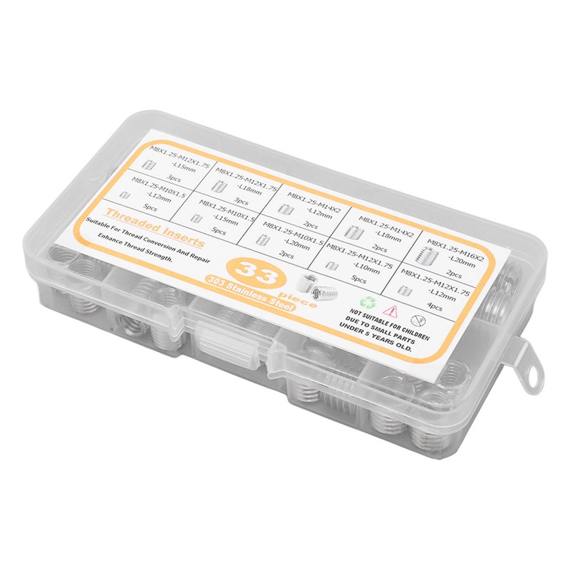 33PCS M8x1.25 Threaded Insert Assortment Kit Stainless Steel Thread Reducer N...