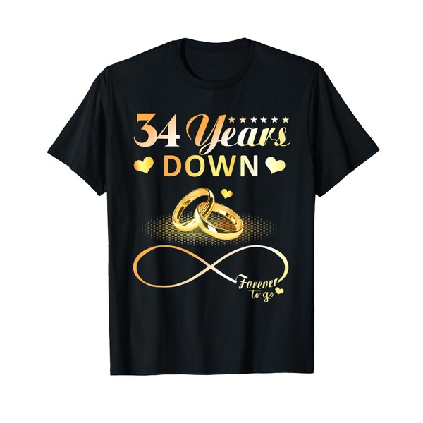 - 34 Years Down Forever To Go Shirt is a perfect 34th Wedding Anniversary gift outfit for Him or her when You were married 34 years ago. It is a great gift idea for Valentine's Day, Halloween, Thanksgiving, and Christmas for 34 Years Marriage Couple.