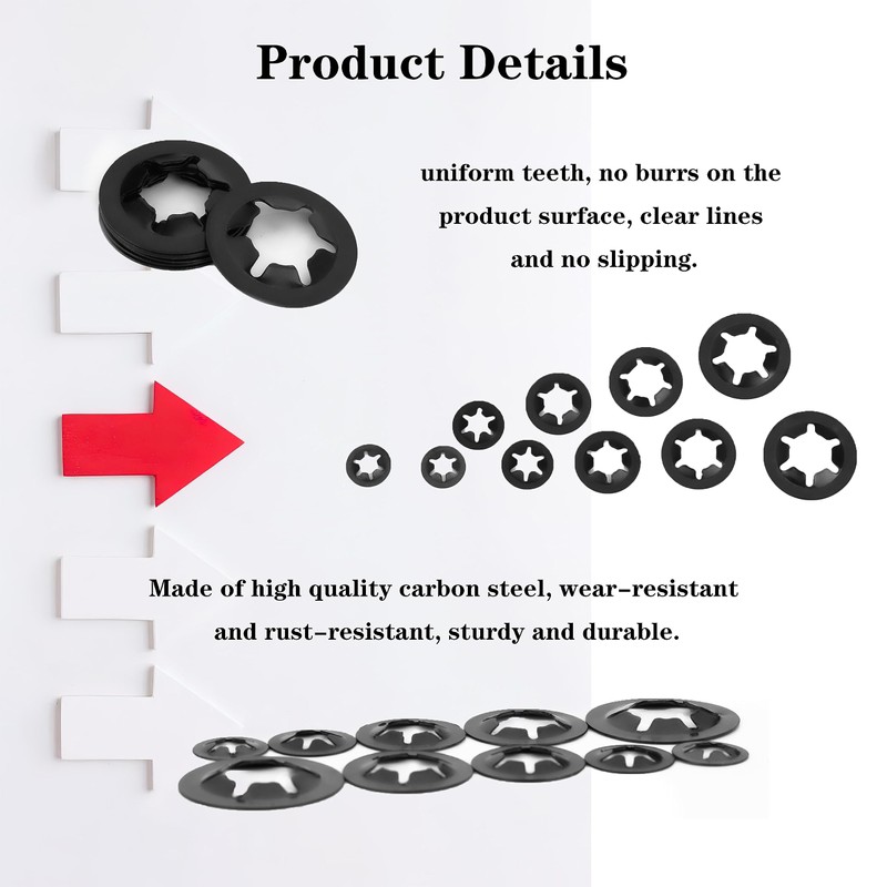 - Premium Material: The Starlock tooth washers are made of 65 manganese steel material with smooth edges, which is corrosion-resistant, high and low temperature resistant and durable for long-term use.