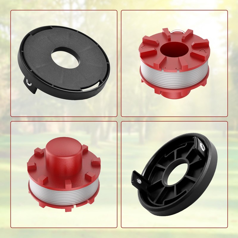 • Package includes: 2 replacement trimmer spools + 1 spool cap + 1 spring; 4 replacement trimmer spools + 1 spool cap + 1 spring; 6 replacement trimmer spools + 1 spool cap + 1 spring; 8 replacement trimmer spools + 1 spool cap + 2 springs.