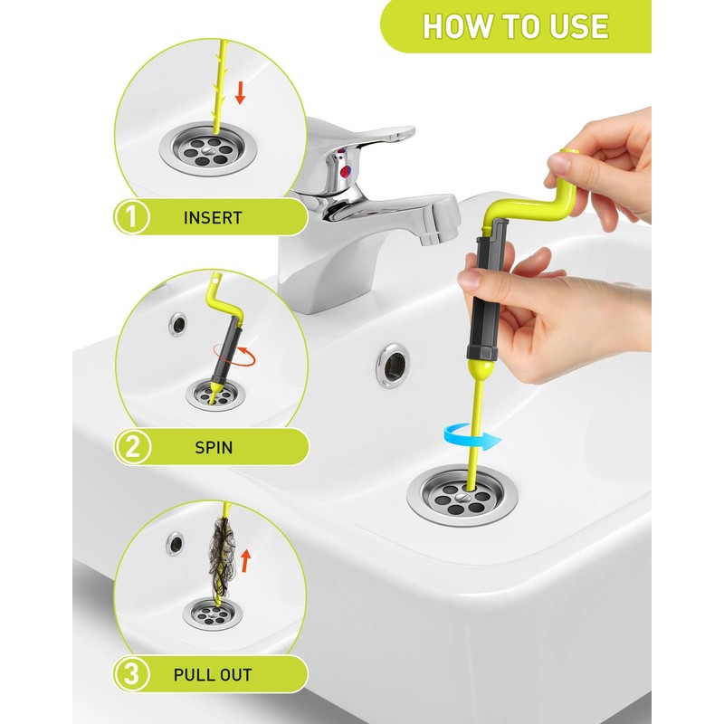 - Easy Operation & Wide Application: The sink snake drain hair removal tool is used to simplify drain maintenance, with a process that is simple and safe - grasp the handle, insert the hair drain clog remover tool into the drain pipe, rotate, and then gently pull it out. Continue these steps until the drain pipe is completely clear. This sink clog remover tool is suitable for various applications, including bathroom sinks, kitchen sinks, toilets, washbasins, bathtubs, and sewer systems.