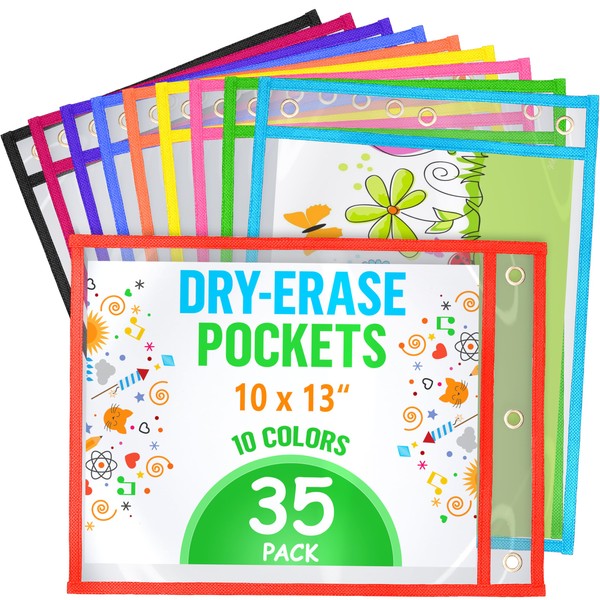 35 Pack Dry Erase Pockets Reusable Sleeves 10x13 inch - Dry Erase Pocket Sleeves Dry Erase Sleeves Classroom Pack Dry Erase Sheet Protectors Dry Erase Pouches Write and Wipe Pockets Erasable Pockets