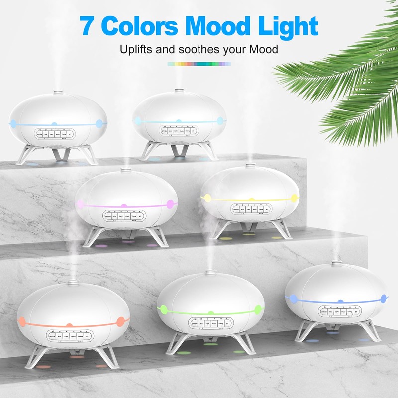 - Aromatherapy:This Ultrasonic Essential Oil Diffuser is a remarkable 5-in-1 aromatherapy device. It has an easy-to-clean 350ml water tank, 7 LED light colors, multiple atomization modes, a remote control, and a safety automatic switch that prevents overheating when the water runs out.