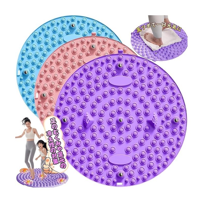 足ツボマット スロージョギング 指圧マット ダイエット 指圧ボード 足裏マッサージ 足ツボ押し ウォーキング 家庭用 人間工学 疲労軽減 足踏み 運動 足裏ケア 滑り止め 折りたたみ コンパクト 円形 (パープル, 35cm)