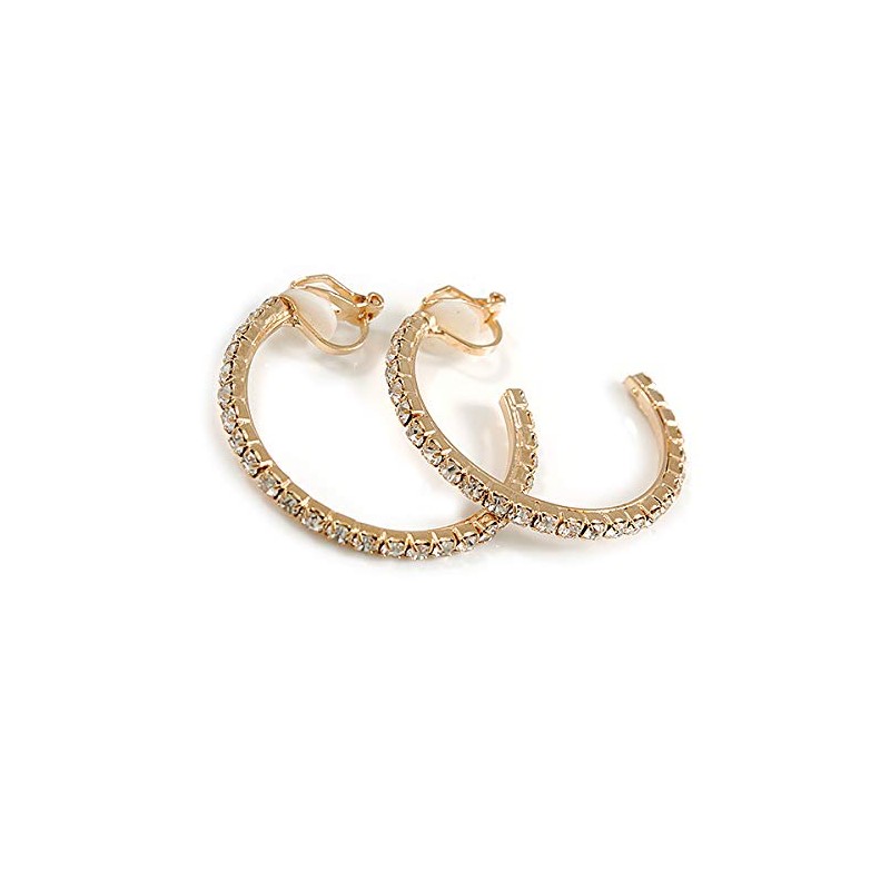 35mm D/Clear Crystal Half Hoop Clip On Earrings/Gold Tone/Medium