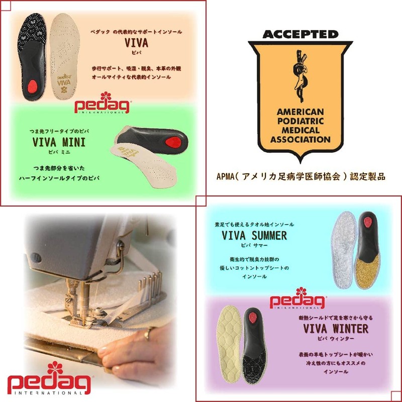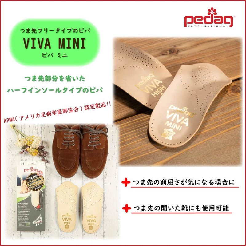 - (Toe Release) APMA certified product. Pedak signature "Viva" insole with toe-free type. The durable footbed supports horizontal arches, inner and outer vertical arches without pressure on the toes, providing support for walking. The heel pad has been designed for optimal cushioning to cushion the shock of the head when walking
