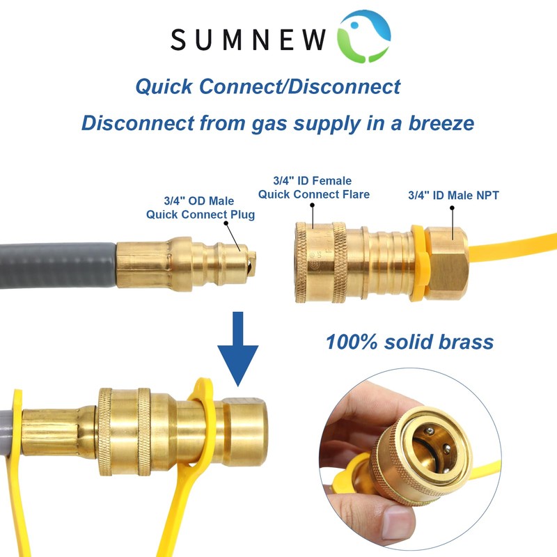 - 【Greater capacity】1/2 inch ID Natural Gas Hose - with 1/2 inch quick disconnect/connect plug x 1/2 inch bell mouth fittings, Supplies up to 135,000 BTU P/HR, provide adequate gas flow for grills and other gas appliance