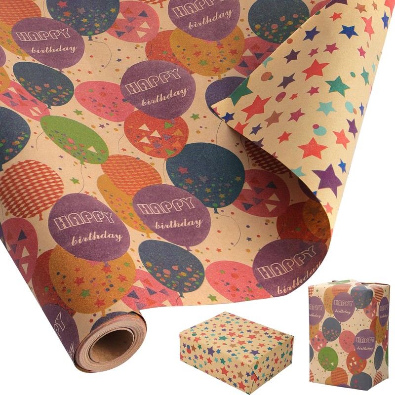 - ❤【Double-sided pattern design】The wrapping paper adopts a double-sided design, one side is a colorful "Happy Birthday" blessing, and the other side is a colorful star pattern. The two designs make the gift present a diverse effect