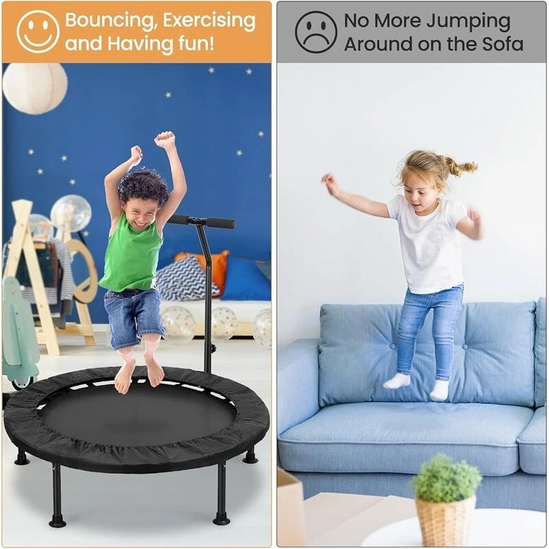 36 Inch Toddler Trampoline Mini Kids Indoor Bounce Adjustable Handle Safe Play
