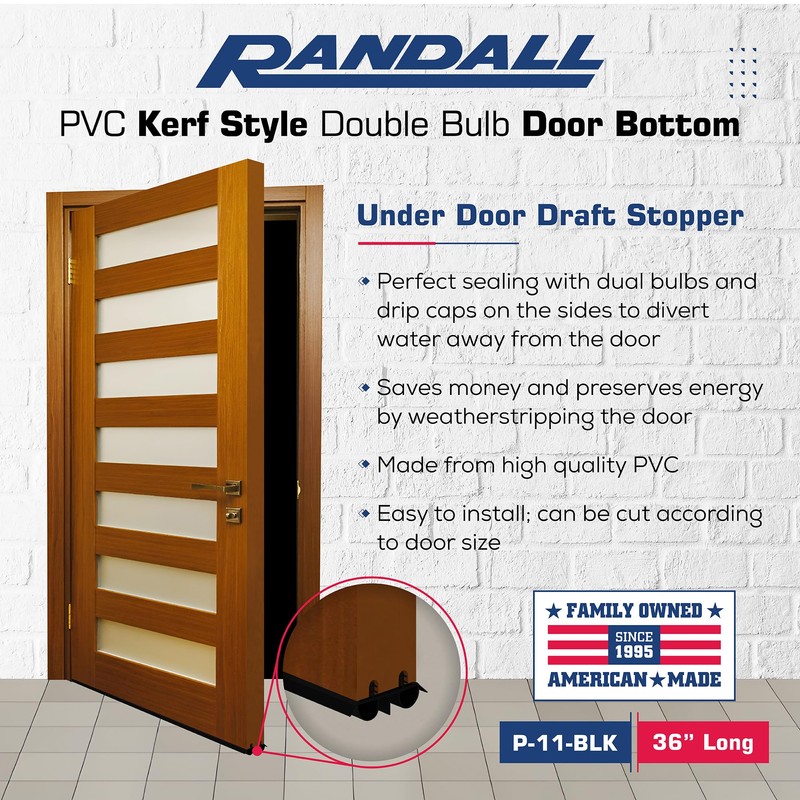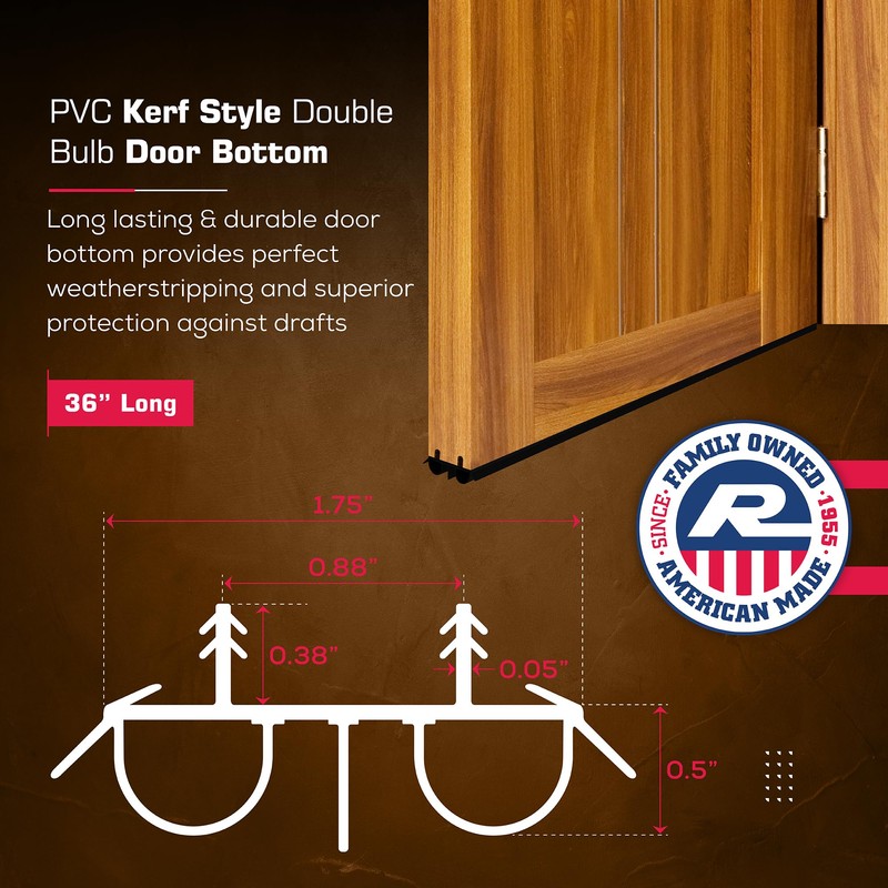 36" Kerf Slide-in Double Bulb Seal Weatherstrip Door Bottom – Durable Seal for Energy Efficiency & Draft Protection (Black)