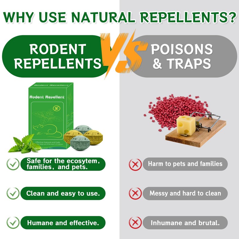 - Humane & Natural Rodent Repellent: Effectively repel rodents like mice, rats, squirrels using natural peppermint oil. This rat repellent emits strong minty scents that make rodents feel uncomfortable, encouraging them to leave without harm. A perfect alternative to traditional mouse traps, rat traps