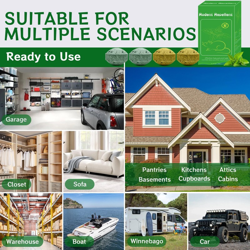 - Powerful & Long-Lasting: Our peppermint oil mouse repellent balls release strong essential oils that last for up to 30 days, covering an effective area of 120 sq. ft. This mouse deterrent works to repel mice, rats, squirrels, spiders, ants, cockroaches, keeping your home and car engine mouse-free