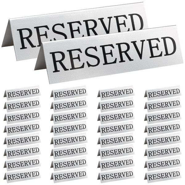 36 Pcs Metal Reserved Table Signs, Double Sided Reserved Seating Signs, Silver Guest Reservation Table Tents for Wedding, Restaurant, Party, Banquet,Ceremony,5.9 x 3.1 Inch