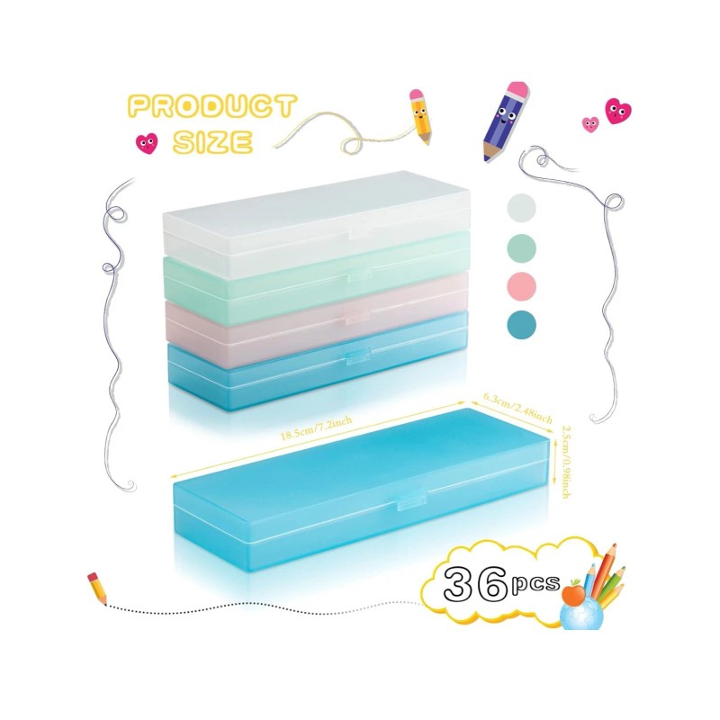 • Assorted Colors for You: you will receive 36 pieces of plastic pencil storage boxes with lids in 4 different colors totally, including white, green, pink and blue, 9 pieces for each color; The sufficient quantity and pastel colors can suffice your needs for study use or replacement