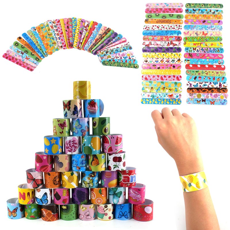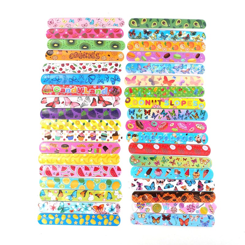- 【Wrist Snap Slap Bands】36 pieces mixed slap bands includes Butterfly, Dessert and Fruit themes. Meet all your needs for various scenarios. The photo shows many of the styles currently available.