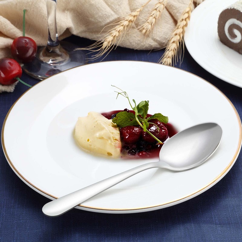 - 【Health & Good Quality】These dessert spoons are made of good-quality stainless steel, they are non-toxic, rust resistant, corrosion resistant and don’t have metal aftertaste. Therefore, it is more durable, healthier and more environmentally friendly than plastic spoons. Most importantly, the tablespoon set is easy to clean and dishwasher safe.