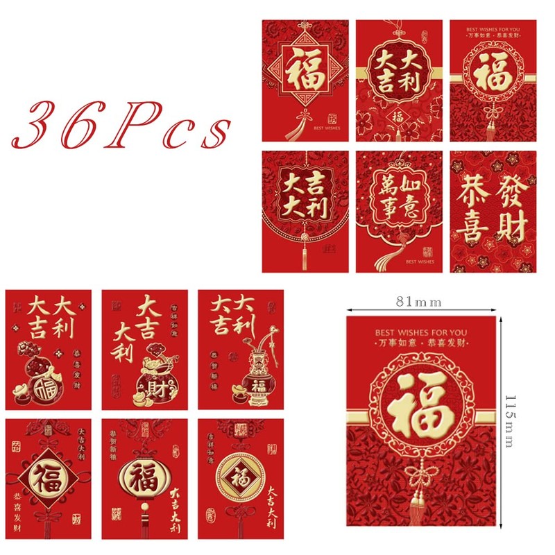 - Package Contents: The package contains 36 pieces of New Year's red envelopes, the product size is about: 81mm*115mm.