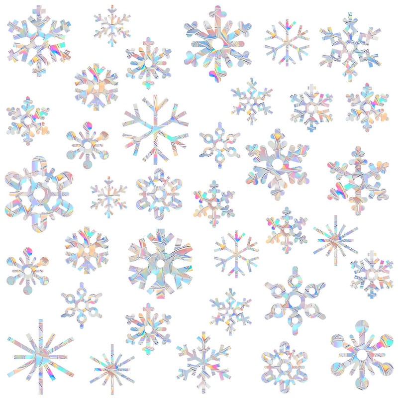 36 Pieces Snowflake Window Decals for Bird Strikes - Anti-Collision Window Decals to Save Birds from Window Collisions,Non Adhesive Reusable Vinyl Raiinbow Christmas Winter Window Stickers