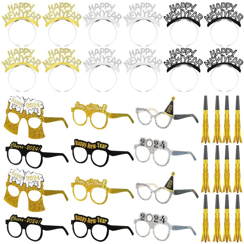 - Paquete de fiesta de Año Nuevo: recibirás 36 artículos para la fiesta de Nochevieja, que incluyen 12 vasos de Año Nuevo con 6 diseños, 12 diademas de papel para fiestas en 3 colores y 12 silbatos chirriantes, suficientes para satisfacer tus necesidades. Necesidades de decoración de Año Nuevo, brindándole una fiesta memorable