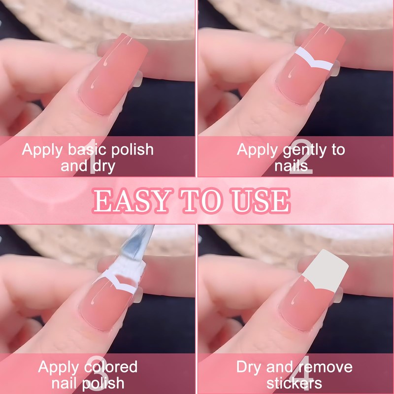 - Easy to operate: This french tip stencil comes with adhesive. Stick the french tip sticker guide, apply nail polish, and tear it off after it is completely dry. French tip sticker are very easy to use, even nail art beginners can easily complete french tip nail guides and enjoy the fun of diy nail art
