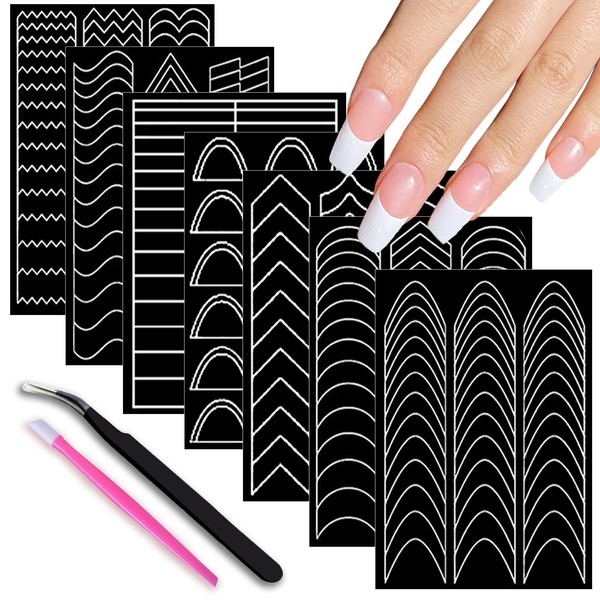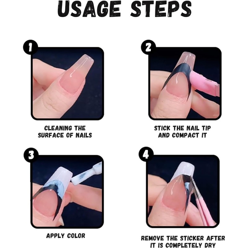 - Easy to Use:This french tip nail stickers comes with its own adhesive. Stick the nail guide and leave a gap, apply nail polish, peel off the sticker after it is completely dry, you're done, it's very simple to use