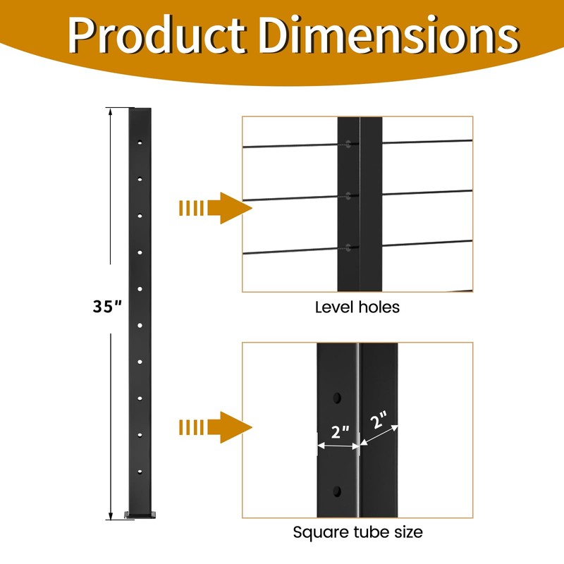 - Modern appearance - Our post design is stylish and adds a touch of sophistication to your 36" cable railing system without obstructing the view. Available in both black and brushed finishes to fit a variety of scenes,ideal for both indoor and outdoor railing systems