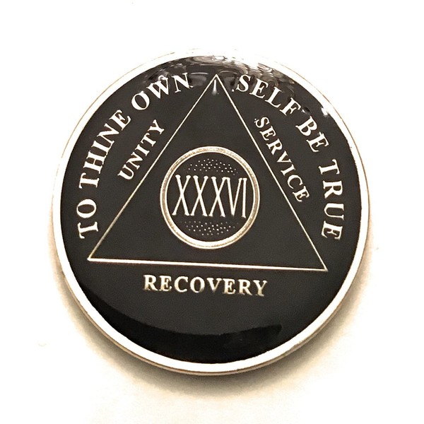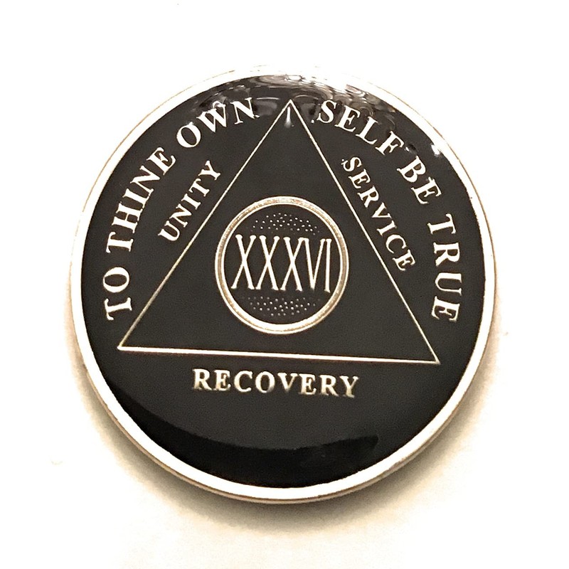 36 Year AA Medallion - Sleek Black & Gold Tri-Plate, Alcoholics Anonymous, Sobriety Chip, Token, Coin