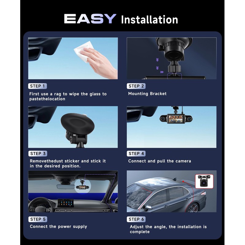 - 【G-Sensor Dashcams】This car dash camera features a high-sensitivity built-in G-sensor that automatically detects sudden shakes or collisions. It instantly locks critical footage to prevent overwriting—even during loop recording. Whether an incident occurs while driving or parked, protected videos are saved in a dedicated folder for quick access. With a reliable supercapacitor, evidence is preserved even during power failures, ensuring 24/7 protection for your vehicle