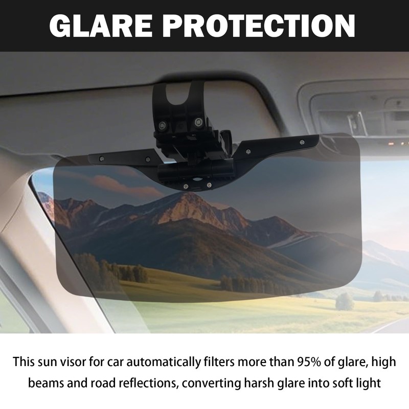 - SUPERIOR ANTI-GLARE: This sun visor for car automatically filters more than 95% of glare, high beams and road reflections, converting harsh glare into soft light. Even in heavy rain/fog/snow, it can still maintain a clear driving vision