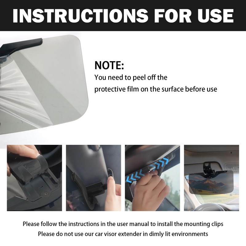 - EASY TO INSTALL: Simply attach the cushioning foam pads to the 4 jaws of the mounting clips of the car visor extender, open the mounting clips to the appropriate width and clip them onto the sun visor, and adjust the angle and position of the lens